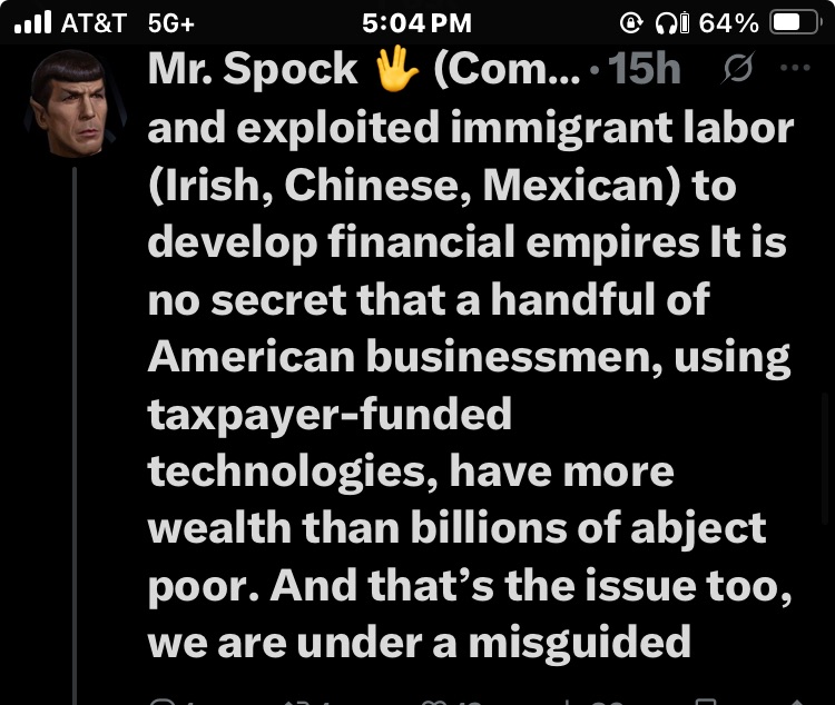 By my grandfather’s generation, he didn’t have slaves and he was not rich in any way, shape or form. He was a common laborer.