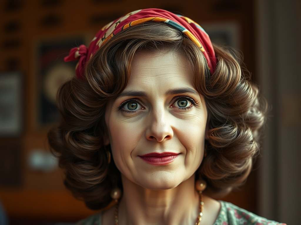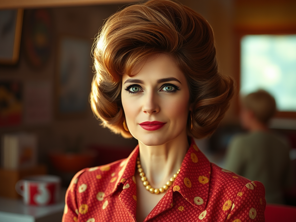 Bee Hive hairdo of the 1970’s on a mid-40’s woman